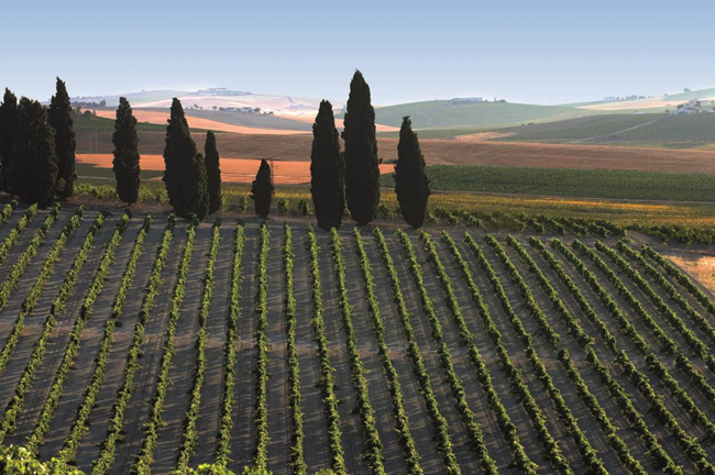 雪莉酒可以使用三個(gè)葡萄品種來進(jìn)行釀造,分別是帕洛米諾(Palomino)、佩德羅-希梅內(nèi)斯(Pedro Ximenez,簡稱PX)和亞歷山大麝香(Muscat of Alexandria)。帕洛米諾在赫雷斯廣泛種植,釀出的葡萄酒天然低酸并缺乏明顯的品種芳香,是雪莉酒的理想基酒;佩德羅-希梅內(nèi)斯和亞歷山大麝香種植量相對(duì)較少,二者皆用于釀造甜型雪莉酒。