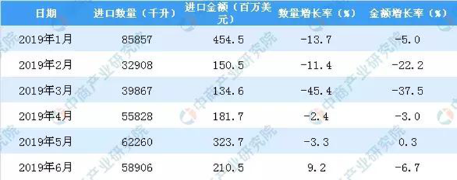 近日,中商產業研究院發布了一份2019年1-6月中國葡萄酒進口數據。以下是今年上半年中國葡萄酒進口數量及金額增長率情況。